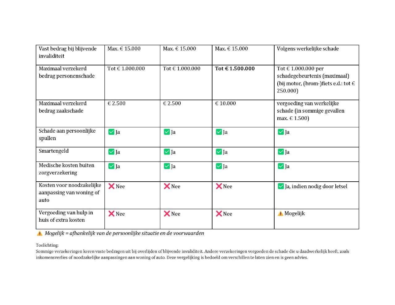 Dit bericht is bedoeld om te informeren, niet om te adviseren. Welke verzekering passend is, verschilt per persoon en situatie. De exacte dekking staat altijd in de polis en de voorwaarden.
